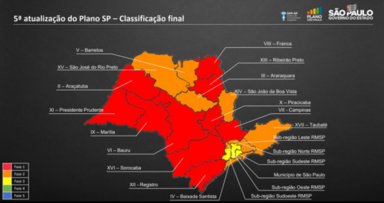 △图为圣保罗州疫情分级情况 图片来源:巴西环球网