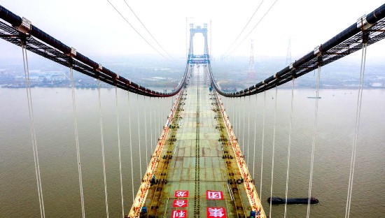 建设中的连淮扬镇高铁五峰山长江大桥。 资料图片