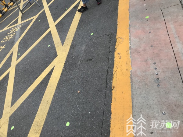 考点设置了人工测温和电脑测温两个通道,为了让考生保持安全距离、有序进场,学校门口的地面上,每隔一米左右就有一个绿色地标。此外,今年各考点均增设一名防疫副主考,专职负责考点的防疫工作。