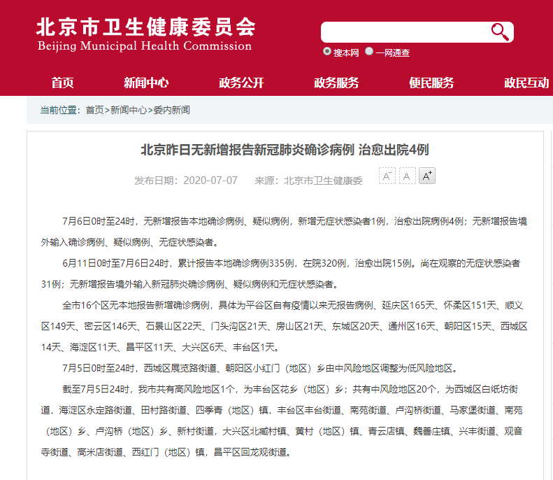 北京市卫健委官网截图。