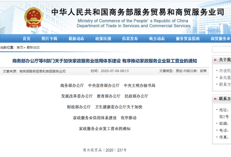 近年来,我国家政服务业持续快速发展,但信用缺失问题较为突出。7月7日,商务部正式启用家政服务信用信息平台。