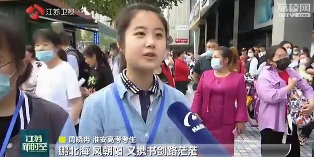 淮安考生周晓冉说:“想到辛弃疾的一句话,鹏北海、凤朝阳、又携书剑路茫茫,送给自己也送给别人,送给今年所有的高考学生,希望所有人都能金榜题名。”