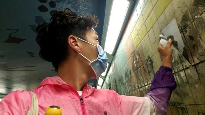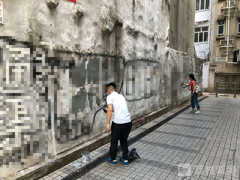 (义工清理墙面涂鸦 这些工作也曾经遭受暴徒滋扰)