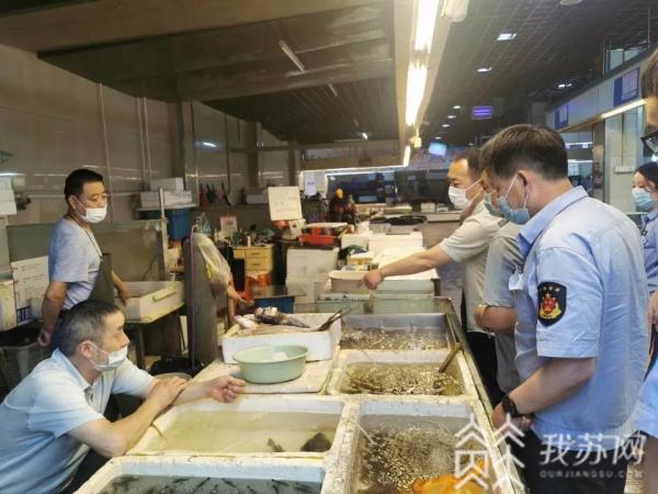 在江阴、宜兴等地,检查人员在农贸市场开展监督检查。重点检查生鲜、冷冻猪肉、牛肉、羊肉、鸡鸭肉等畜禽肉类、水产品及其制品的索证索票。同时,结合当前疫情防控的严峻形势,督促指导集中交易市场开办者严格落实食品安全自查等主体责任,切实做好进货查验、索证索票等关键环节控制,有效防控食品安全风险。