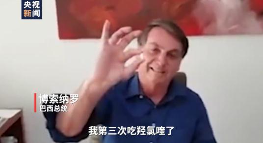 巴西总统博索纳罗称自己正服用羟氯喹治疗新冠肺炎,“我们知道还有其他药物可以帮助对抗新冠病毒,我们知道没有一种药物的功效得到科学证明,但是我是另外一个药起作用的活例子,我相信羟氯喹。”