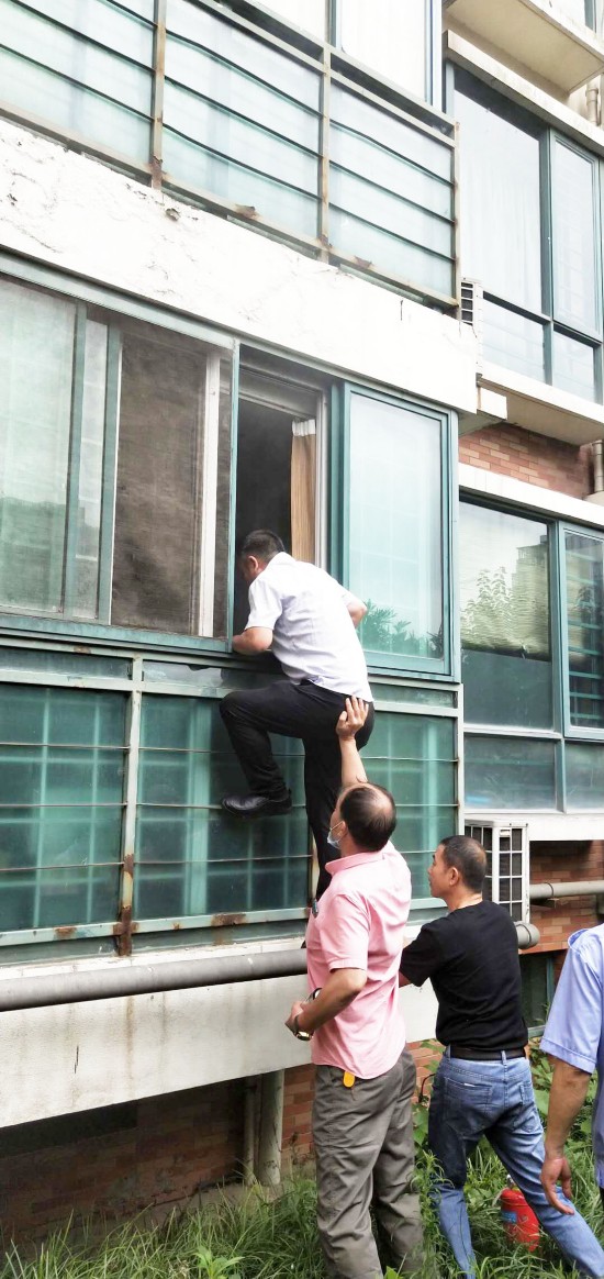 没多久,有业主跑到物业值班室:“1楼有户人家好像在冒黑烟,还不小呢……”值班的杨朝俊赶紧通知工程师傅断电,其他保安人员准备灭火器。