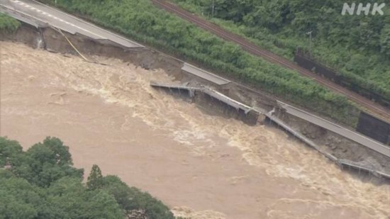 国土交通省数据表示,4日-8日中午期间,日本9个县60条河川,至少73处地方发生泛滥。截至目前,九州地区约1500栋房屋发生地上浸水,3000栋房屋地下浸水,至少3200人被迫住进避难所,多部车辆失踪或被暴雨冲进河中。