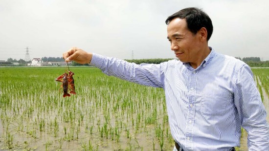 “一块水稻田就是一方生态湿地,新技术措施下的稻虾共生极大地减少了农药化肥施用量,对稻田水质和土壤起到了很好的保护作用。”张家宏团队经过多年田间实验测算,应用“一稻三虾”成套技术,每亩稻田的药肥使用量相比传统耕作减少近七成。