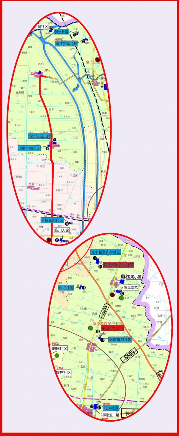 目前,三树镇联盟社区已开工建设,该项目是我区打造的省级示范项目,计划新建农房177套,计划年底竣工。此外,按照省市示范项目标准,围绕205国道、343省道、503机场连接线等国省干道交叉处和233国道、京沪高速两侧,编排了11个项目,其中孙圩、丁圩、杨庙、刘河一期、张河、光华社区6个项目计划今年竣工,总计767套;集玉嘉园三期、娘庄、胡庄、刘河二期、玉尧社区5个项目计划明年竣工,总计809套,通过一个个沿路、近城、壮产业农房改善示范项目的建设,实现以点带面、整体提升的工作目标。