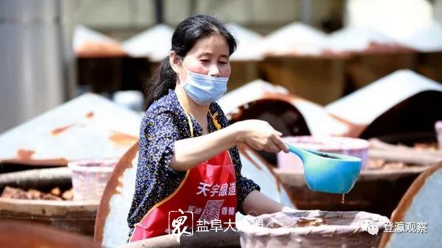 许立芹在当地的酱醋厂酿晒酱油。盐阜大众报报业集团全媒体记者 王焱 摄