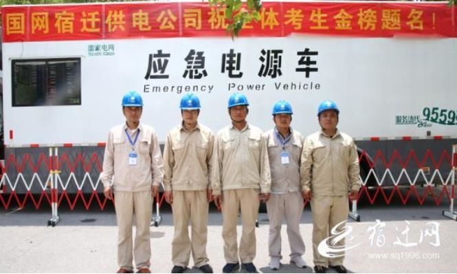 7月8日下午1时许,宿迁供电公司市场及大客户服务室保电人员在宿豫中学考点现场保电。而该公司阳光送变电工程有限公司应急抢修人员则在宿豫实验高中驻点值守。他们共出动103人,工程车8辆,货车4辆,抢修备用物资若干。叶敬伟这几天一直坚守在宿豫实验高中,看到前来考试的儿子叶品征身影,他却坚守岗位,只能在心里默默为他祈福。