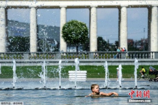 当地时间6月27日,莫斯科的Muzeon公园,民众在喷泉里玩水降温,近日莫斯科遭遇高温天气。据悉,俄罗斯西伯利亚今年的最高气温已经达到了38摄氏度,创下了有气象观测记录以来的新高。