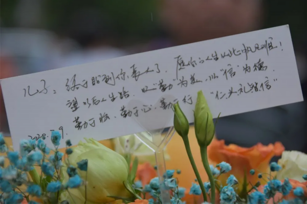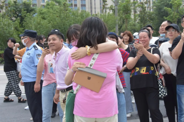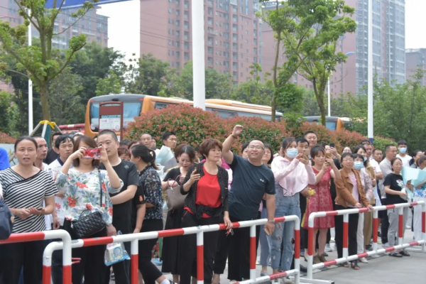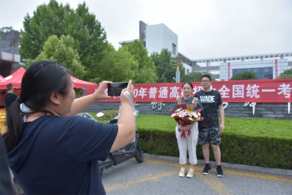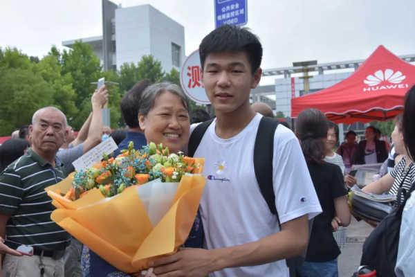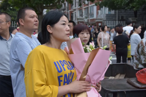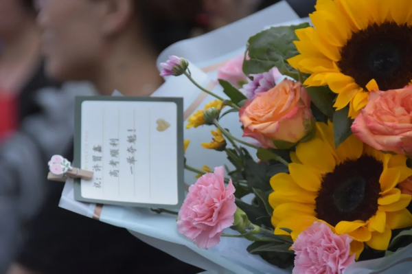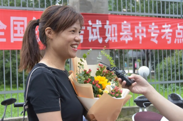 在考场外的家长和好友们,迫不及待迎接凯旋的考生们,他们手上捧着的鲜花,在人山人海中绽放!