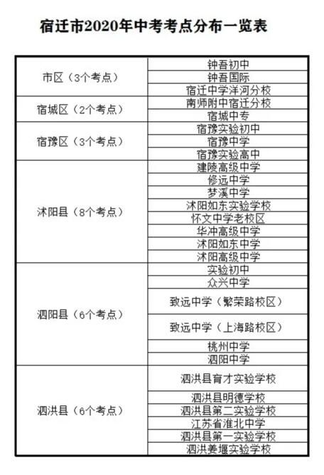 2020年,宿迁中考报考人数54746人,比去年增加4677人。全市共设28个考点1839个考场。具体有哪些考点?↓↓