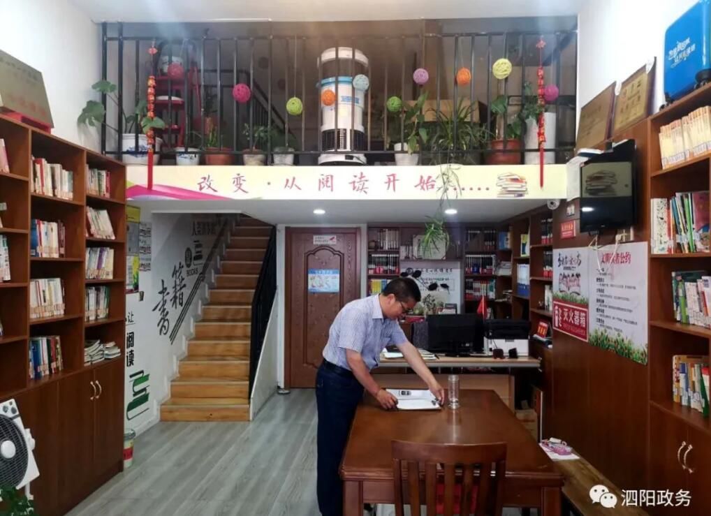 这家公益书屋的创办人是李成兵,今年50岁。2006年之前,他一直在苏州、扬州等地工作,后来因为脑梗死引起的右半身僵硬、麻木,而回到泗阳修养。