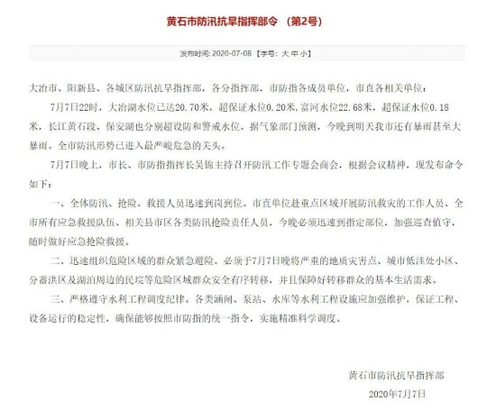 蔡甸区防汛抗旱指挥部发布紧急通知,