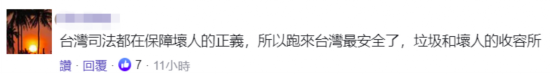 有岛内网友留言,“台湾成了罪犯天堂?”台湾“专收垃圾”。↓