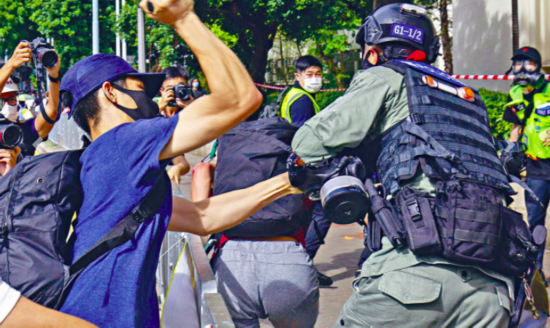7月1日,一名警员在香港铜锣湾高士威道近兴发街采取拘捕行动期间,被多名暴徒以利器及雨伞插伤,血流如注。24岁的黄姓男子涉嫌以利器刺伤警员,他1日深夜到机场准备潜逃,结果被警方拘捕,此人已被控“有意图伤人罪”。