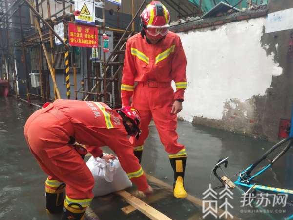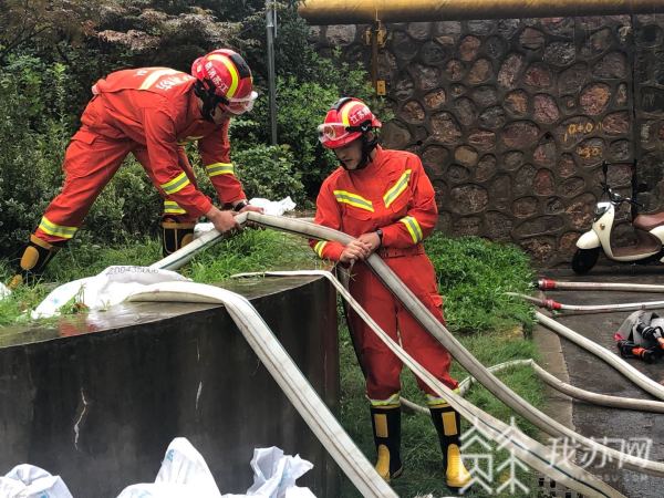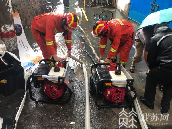 7月11日上午11时31分,南京市鼓楼区佳盛花园小区出现积水,清江村消防救援站消防指战员迅速携装备赶往现场处置。小区内积水已没过脚踝,消防员使用排水设备有序处理积水情况,现场无人员被困、伤亡情况。