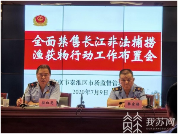 7月9日下午,秦淮区市场监管局又专题召开全面禁售长江非法捕捞渔获物专项工作布置会,对深化推进专项工作再动员、再部署。会上,要求由点到面,由上到下,全力以赴在全区范围内开展农(集)贸市场、电商平台、餐饮服务单位等江鲜禁售专项整治行动。