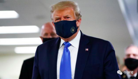 这可是特朗普第一次在公开场合戴口罩,人生的第一次啊。