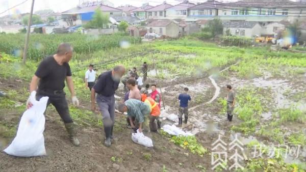 今天(13日)上午,在句容下蜀镇老便民河桥头村段,下蜀镇正组织民兵和村干部对一处渗漏点进行紧急抢险。据下蜀镇桥头村党总支书记沈京城介绍,该渗漏点是他们在巡堤时发现的,共有3处小渗漏点。发现情况后,他们立即组织专人前来查看,并采取紧急措施进行防护处理。