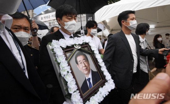 13日,首尔市为朴元淳举行出殡(纽西斯通讯社)