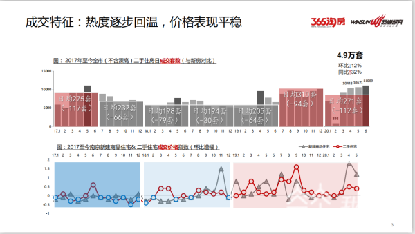 2017年5月南京开启3年限售政策,今年恰逢第三年,部分次新房开始解冻陆续上市。这些次新房集中的板块区域,对于下半年南京二手房市场,依然具有支撑力。但受到新房大量上市的冲击,下半年不排除二手房成交量弱化的可能性。