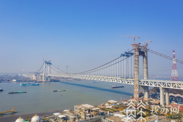 该座大桥建设采用超大陆上沉井接高、下沉施工等十大创新技术,拥有世界上公路铁路车道数最多、荷载重量最大的悬索桥等多项世界第一。