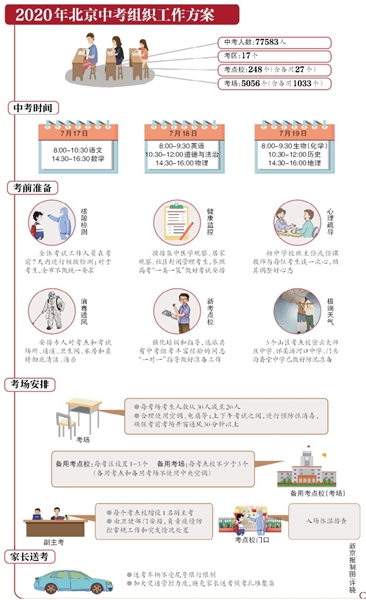 7月17日至7月19日,北京市77583名初三学生将进行中考。