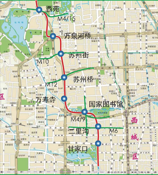 市重大项目办相关负责人介绍,地铁16号线中段(西苑站-甘家口站)线路全长10公里,共设7座车站,包含国家图书馆站、苏州街站、苏州桥站、二里沟站4座换乘站。