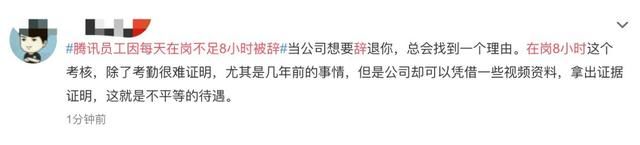 对于#腾讯员工因每天在岗不足8小时被辞#这一话题,网友也议论纷纷,有人表示:“弹性工作制下,员工想要证明在岗8小时确实存在一定难度,但公司却可以凭借一些视频资料,拿出证据证明。”