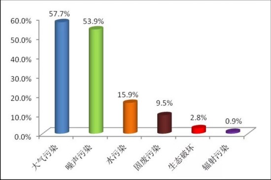 从污染类型来看,6月大气污染举报最多,占举报总量的57.7%,其次为噪声污染举报,占53.9%,水污染、固废污染、生态破坏和辐射污染举报分别占15.9%、9.5%、2.8%和0.9%。