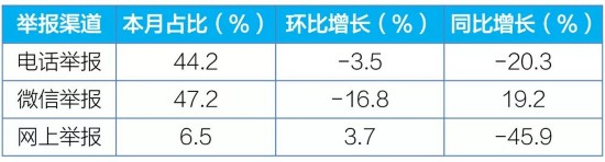 电话及微信举报量环比下降