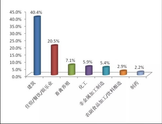 从行业类型来看,6月公众反映最集中的行业为建筑业,占40.4%,其次为住宿餐饮娱乐业和畜禽养殖业,分别占20.5%和7.1%。其中,建筑业举报占比环比下降5.7个百分点,住宿餐饮娱乐业、畜禽养殖业举报占比环比分别上升1.8个百分点和0.2个百分点。