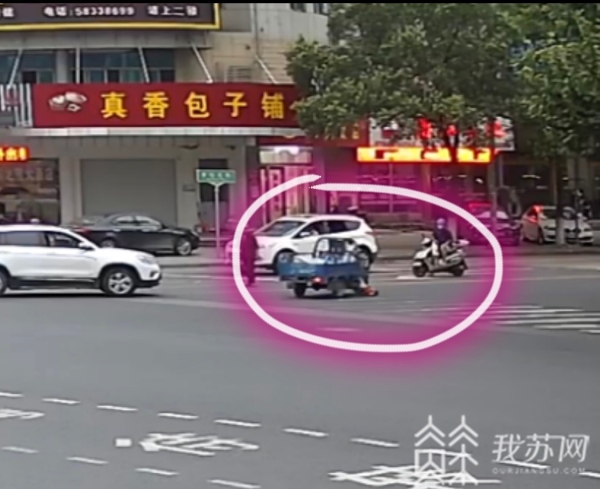 就在民警处警时,再次接到报警,在长江西路香山南路路口,一辆电动三轮车撞上一名3岁幼童。原来,幼童当时跟随爷爷抢绿灯的最后几秒步行过路口。事故发生时,幼童缓步跟在爷爷身后行至路口中央,与左拐弯绿灯通过斑马线的电动三轮车相撞。