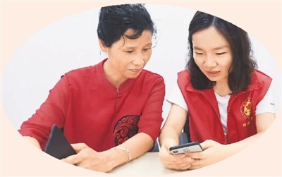 在浙江省杭州市临安区锦城街道胜利社区,青年社工指导老人们如何用手机购物。新华社记者 徐 昱摄