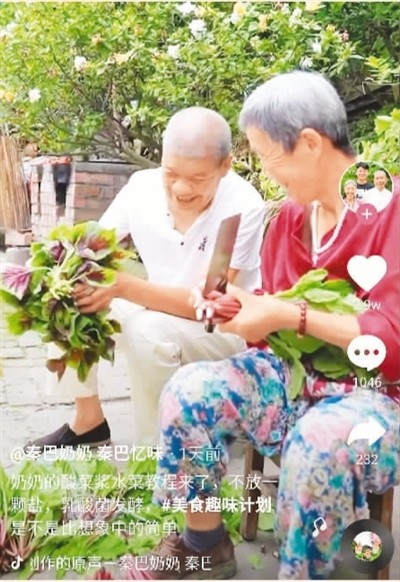 在快手、抖音、B站(哔哩哔哩)等短视频平台上,圈粉无数的“银发网红”比比皆是。如抖音账号“秦巴奶奶 秦巴忆味”记录大巴山附近两位老人的乡村生活。奶奶烹饪的红烧猪蹄、洋芋粑粑炒腊肉、浆水面等陕南美食令网友们垂涎三尺。目前,该账号已获得273万粉丝,获赞3400多万次;帅气的“北海爷爷”经常穿西装、戴礼帽、打领结出镜,他对生活的热爱和“不服老”的精气神令许多年轻人羡慕不已;“济公爷爷”发布的短视频以“亲爱的娃娃们”开场,用朴实的语言讲人生经验,谈世间百态,如邻家爷爷般亲切;“只穿高跟鞋的汪奶奶”一场直播带货,销售额能达到数百万元,超过许多年轻的直播网红。