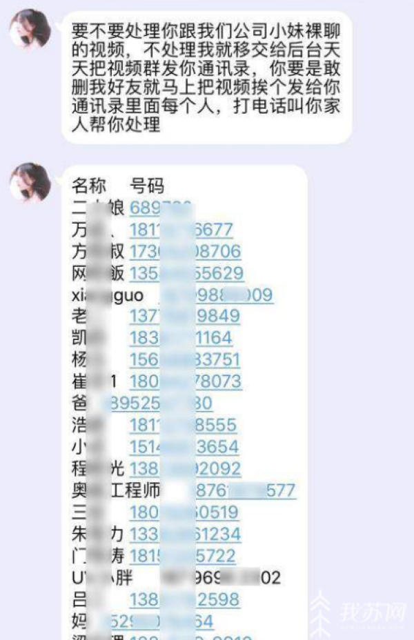 “裸聊”,这个白天无法提及的敏感词,在荷尔蒙弥漫下流露出互助的柔光。心猿意马的小张立刻下载了该APP,谁知进入直播房间,却看不到人。“美女”解释网络卡顿,随后直接在QQ上与小张进行视频裸聊。互不相识的两个陌生人,却在网络两端彼此温存。可心跳加速的感觉还未消散,就随即被恐惧和懊悔替代。视频通话很快被“美女”挂断,同时发来了二人裸聊的视频和一连串的电话清单。对方竟然进行了录频!更可怕的是,对方还掌握了自己手机通讯录的信息!"美女”开口要求小张破财消灾:我要钱,你要脸,不给钱,就把视频发给亲朋好友,让大家都看看。