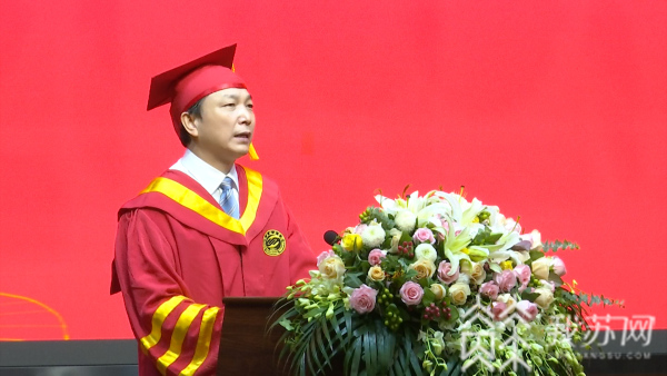 校长张策华以"让担责成就晓庄学子的未来"为题,寄语全体毕业生,要有担责的信念,在树立远大理想中成为有志之士;要有担责的技能,在潜心学习研究中成为有识之士;要有担责的行动,在矢志砥砺奋进中成为有为之士。张校长最后叮嘱毕业生:“希望你们把‘教人求真,学做真人’的校风精神和‘教学做合一’的校训品格融入血脉当中,带着全体晓庄人的祝福,努力成为社会英才。”