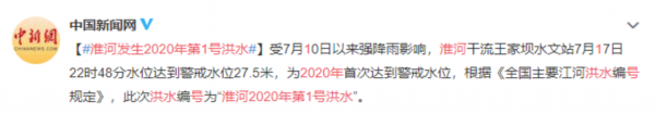 连日来,淮河流域持续降雨,除了给生活带来不便,也造成了河湖水位升高,带来了汛情隐患:淮河发生2020第1号洪水!