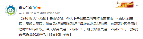 虽然目前淮河汛情集中在安徽段,但未来一段时间淮河流域部分地区仍有大到暴雨,淮安近期也有降水天气。