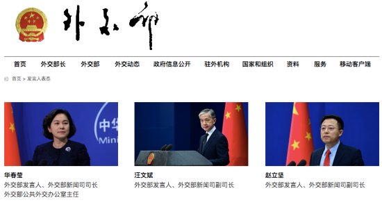 目前在任的3位发言人则是:华春莹、汪文斌、赵立坚。