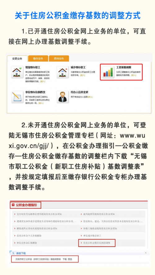 根据《住房公积金管理条例》(国务院令第350号)、《关于住房公积金管理若干具体问题的指导意见》(建金管〔2005〕5号)、省建设厅、省财政厅、人民银行南京分行《关于住房公积金管理若干具体问题的指导意见》(苏建金管〔2005〕298号)、住房城乡建设部、财政部、人民银行《关于改进住房公积金缴存机制进一步降低企业成本的通知》(建金〔2018〕45号)及《省住房城乡建设厅、省财政厅、中国人民银行南京分行转发住房城乡建设部、财政部、中国人民银行关于改进住房公积金缴存机制进一步降低企业成本的通知》(苏建金管〔2018〕282号)相关规定,结合无锡市实际情况,7月1日起,2020年度的公积金缴存基数及缴存比例调整开始啦!
