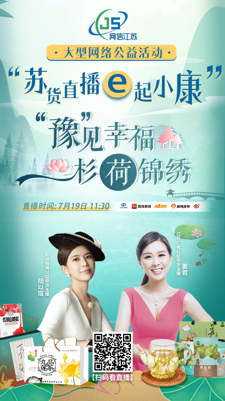 7月19日中午11:30,由江苏省委网信办指导,省互联网行业联合会、省互联网协会等主办,省广电总台荔枝新闻、荔星传媒承办的“苏货直播e起小康”大型网络公益活动将走进宿迁宿豫。微博、荔枝新闻同步直播,还有惊喜抽奖等着你!