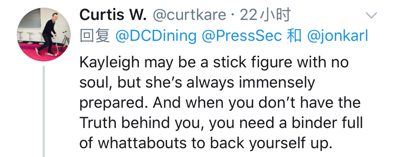 “凯莉是个没有灵魂的传话筒,但她准备真的很充分。当没有真相能支撑她的发言的时候,只能准备一个大笔记本,上面写着所有事情的‘答案’。”↓↓