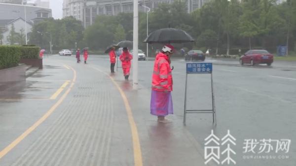 早上,在泗阳市民环道上,记者看到,路面已经出现明显的积水,水深的地方都已达到了20公分。过往车辆纷纷放慢了速度,不时溅起很高的水花。环卫工人们则对积水较深的排水口设置了防汛警示牌,并安排专人把守,同时对堵塞的管道内杂物进行清理,保证下水管网畅通无阻。