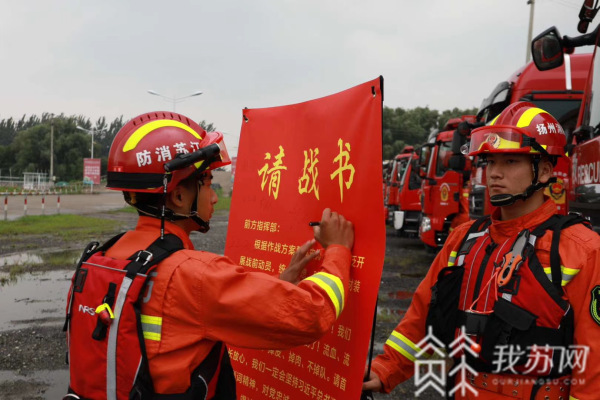 出发前,扬州市消防救援支队政委周伟布置任务:“灾情就是命令,是党和人民对我们所有参战人员的考验,希望大家能够坚决完成好这次抢险救援任务,同志们有没有信心?”“有!”
