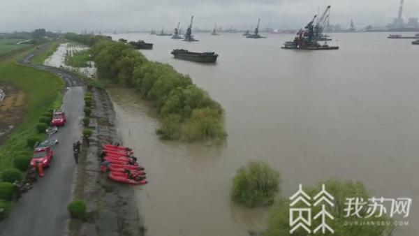 11点半,扬州消防顺利抵达位于世业洲客运站附近的集结点。集结点距离长江大堤仅数十米远。记者走上江堤看到,江滩外侧已被江水吞没。