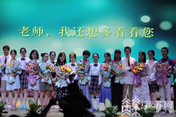 典礼最后,高三学生代表们上台领取毕业证书,合影留念。